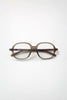 The 'Jane' eyeglasses from the OM.1 collection. Handmade with bio-acetate, featuring a soft round design, slim construction, and uniform stick temples.